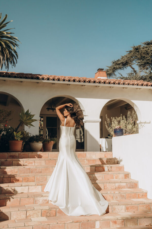 Bringing a fresh take to modest bridal fashion, Style SY8148 blends sleek sophistication with timeless elegance. This ultra-chic fit-and-flare wedding dress features a classic scoop neckline and wide straps, offering a refined yet modern appeal. Thoughtfully designed seaming enhances the figure, while the structured corset bodice provides a flattering, tailored fit. Flowing from the knee, the trumpet skirt creates a striking silhouette that moves gracefully with every step. Understated yet undeniably stunning, this minimalist design is perfect for the bride who loves effortless sophistication. This gown is also available in plus sizes.