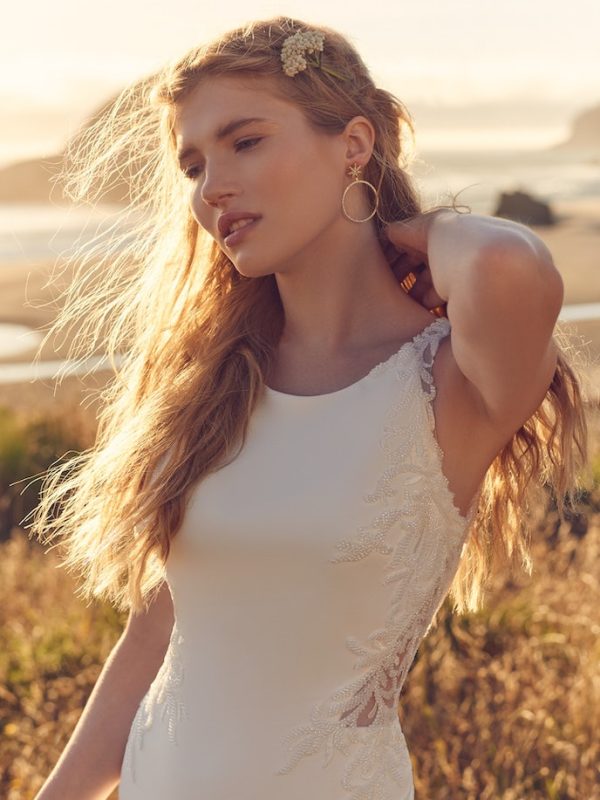 Keyhole back crepe wedding gown with a halter neck