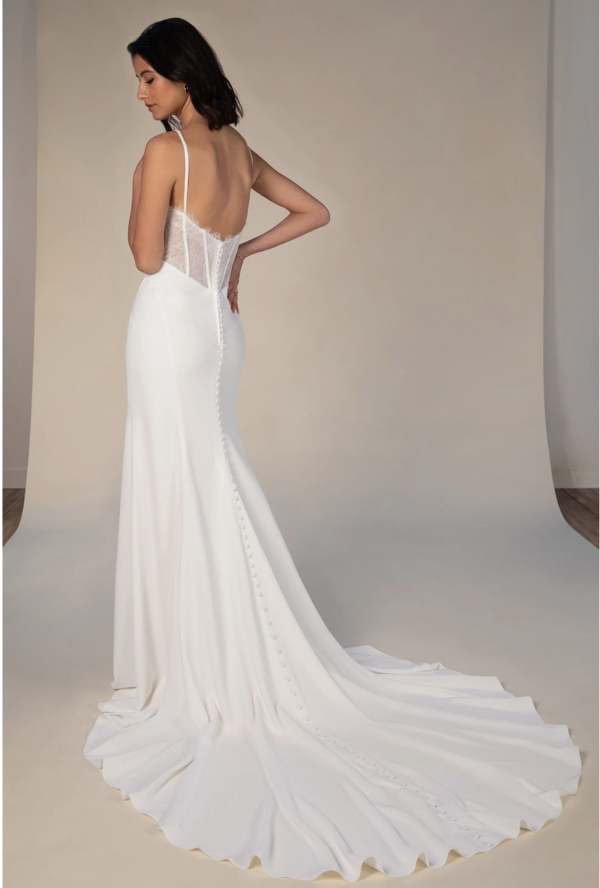 SEXY CREPE COLUMN WEDDING DRESS WITH LACE BACK AND SPAGHETTI STRAPS