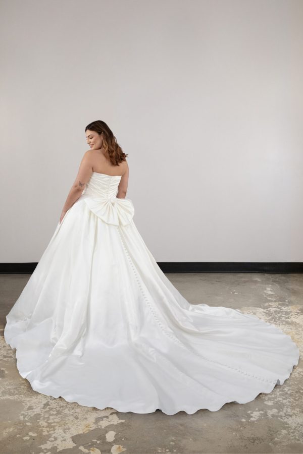 MODERN PRINCESS PLUS SIZE BALLGOWN WEDDING DRESS WITH DETACHABLE BOW DETAIL