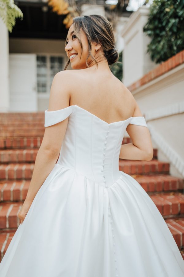 SIMPLE MIKADO BALLGOWN WEDDING DRESS WITH OFF-THE-SHOULDER STRAPS