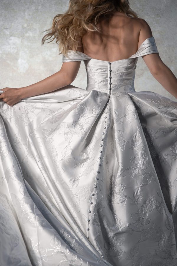 We carry select styles from each designer, and dresses often sell off the floor so availability changes regularly from what’s online.