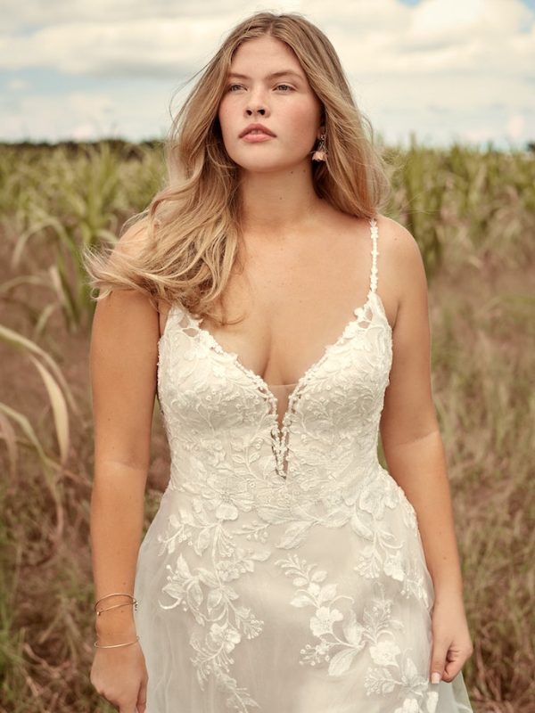 We carry select styles from each designer, and dresses often sell off the floor so availability changes regularly from what’s online.