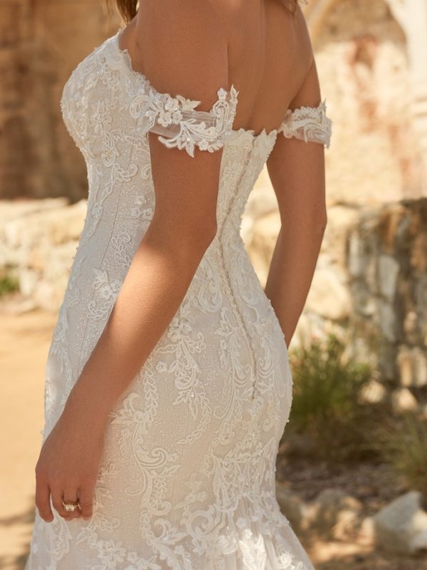 Off-the-shoulder elegant bridal dress in a mermaid silhouette