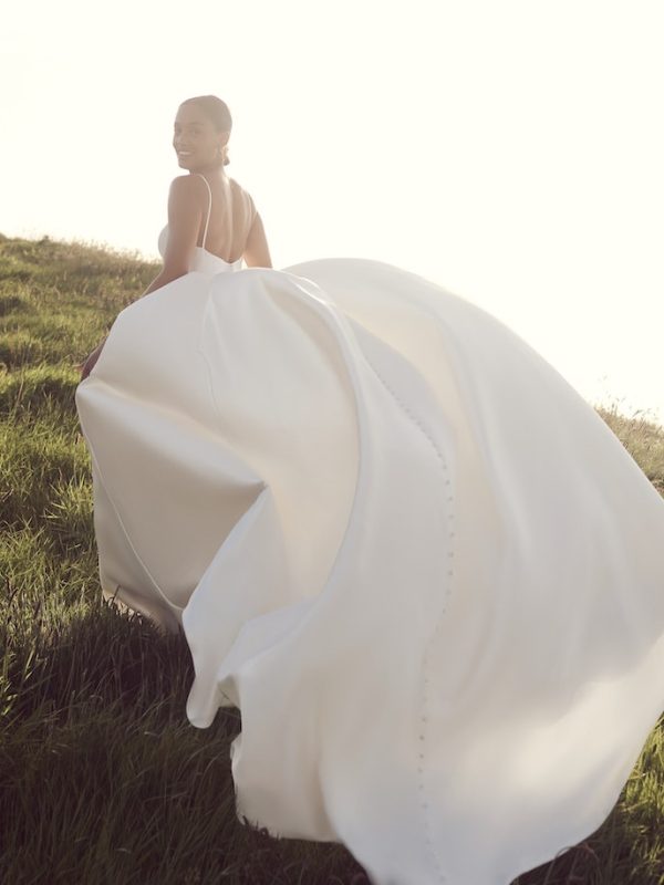 Sexy satin deep V-neckline bridal gown with buttons