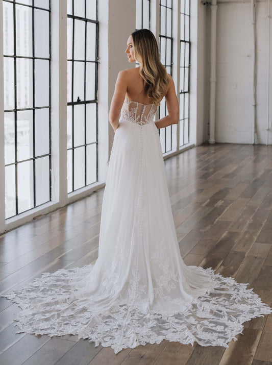 Flowing Chiffon A-line Wedding Dress with Dramatic Train