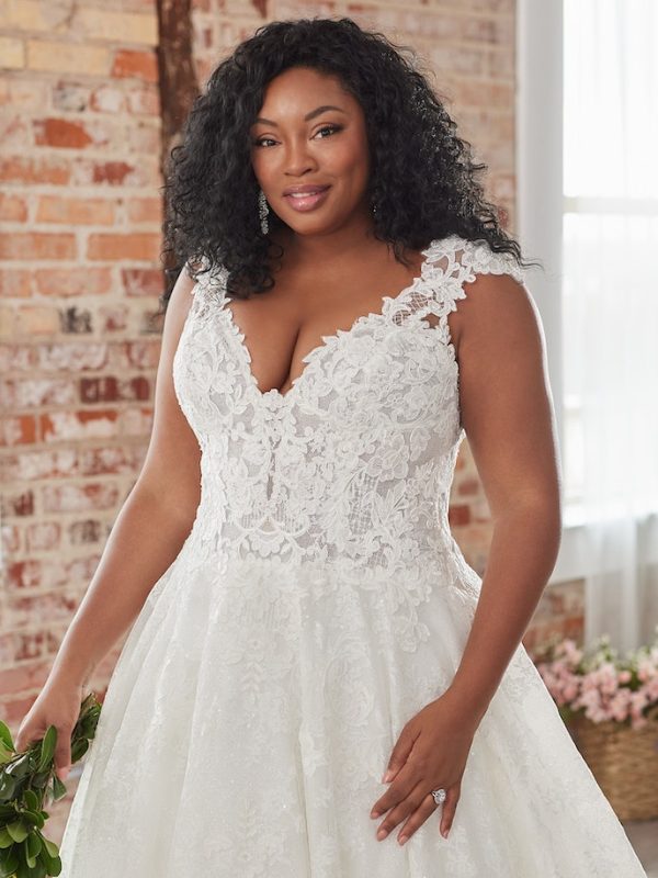 We carry select styles from each designer, and dresses often sell off the floor so availability changes regularly from what’s online.