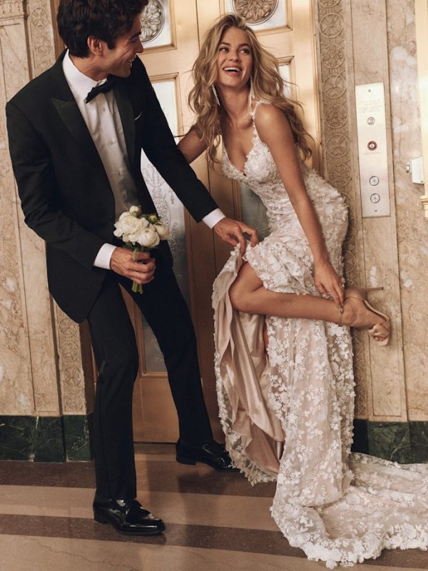 We carry select styles from each designer, and dresses often sell off the floor so availability changes regularly from what’s online.