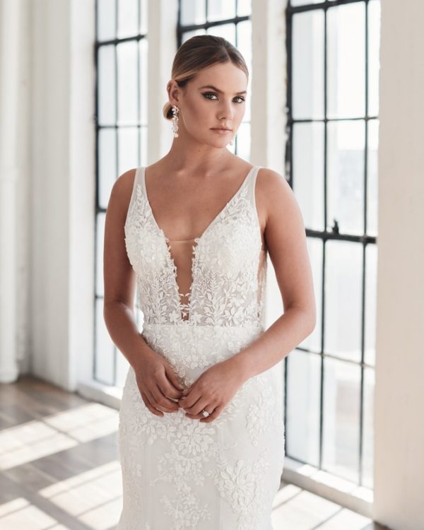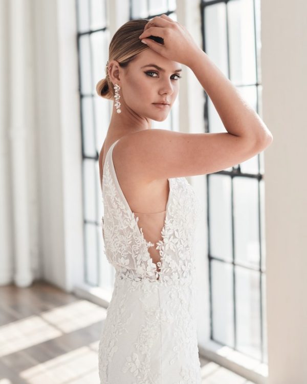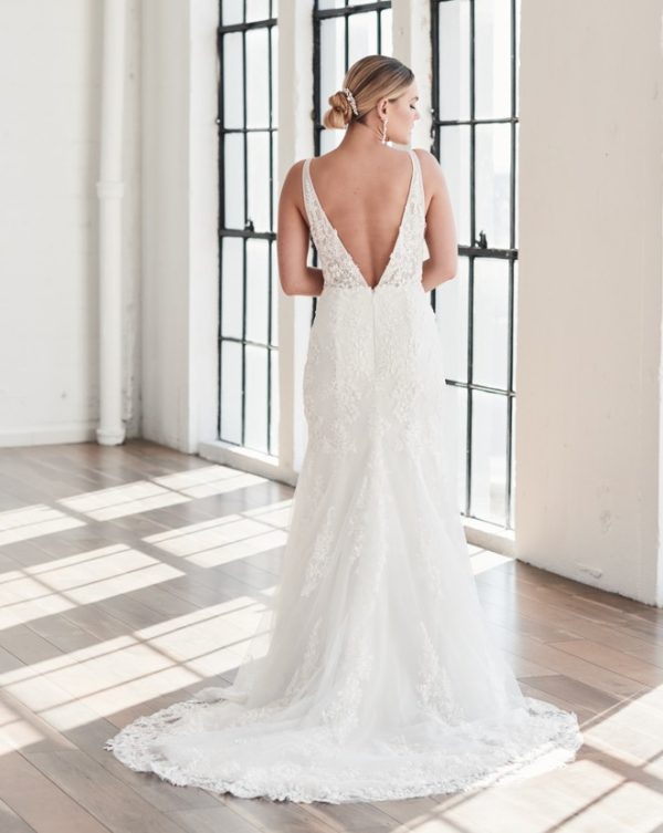 Refined Fit-and-Flare Lace Wedding Dress with Daring Low Back