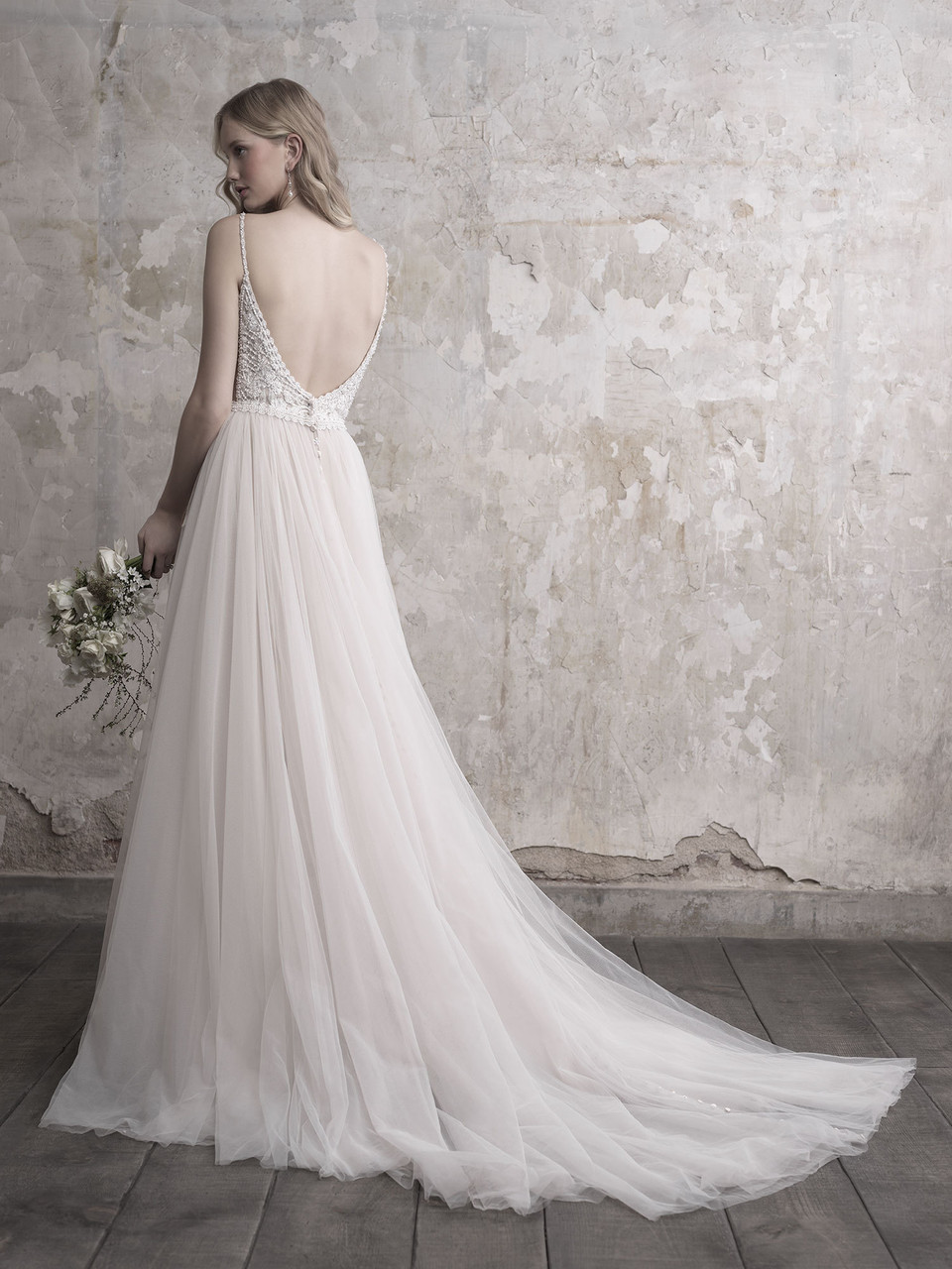 All sample sale gowns may have some minor imperfections, flaws, minor stains, loose threads/beads.