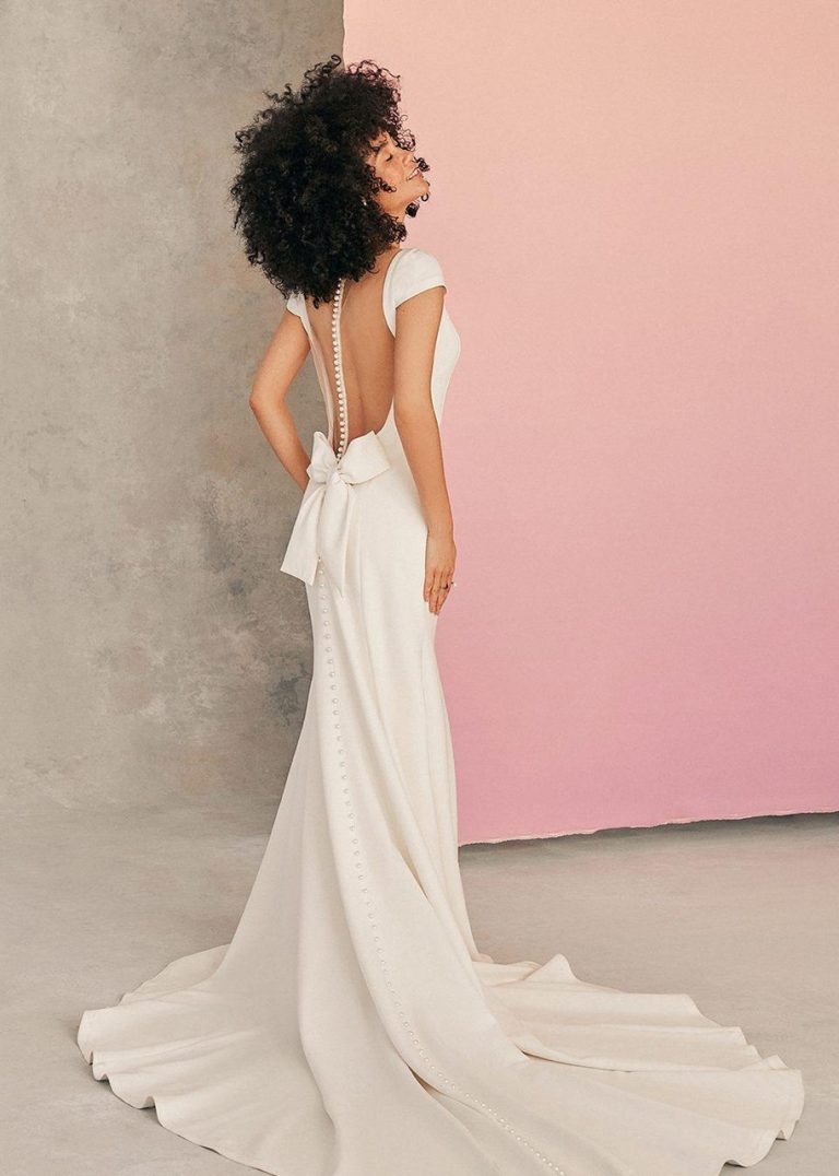 We carry select styles from each designer, and dresses often sell off the floor so availability changes regularly from what’s online.