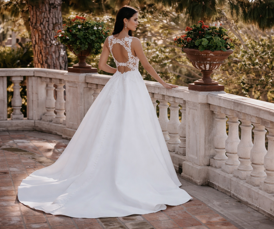 Ballgown – Mikado with plain cotton lace tank style bodice