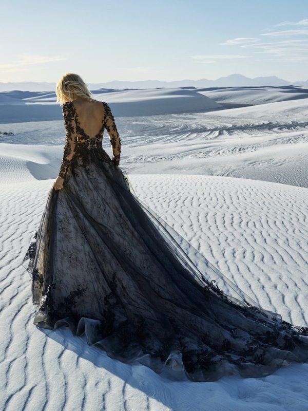 We carry select styles from each designer, and dresses often sell off the floor so availability changes regularly from what’s online.